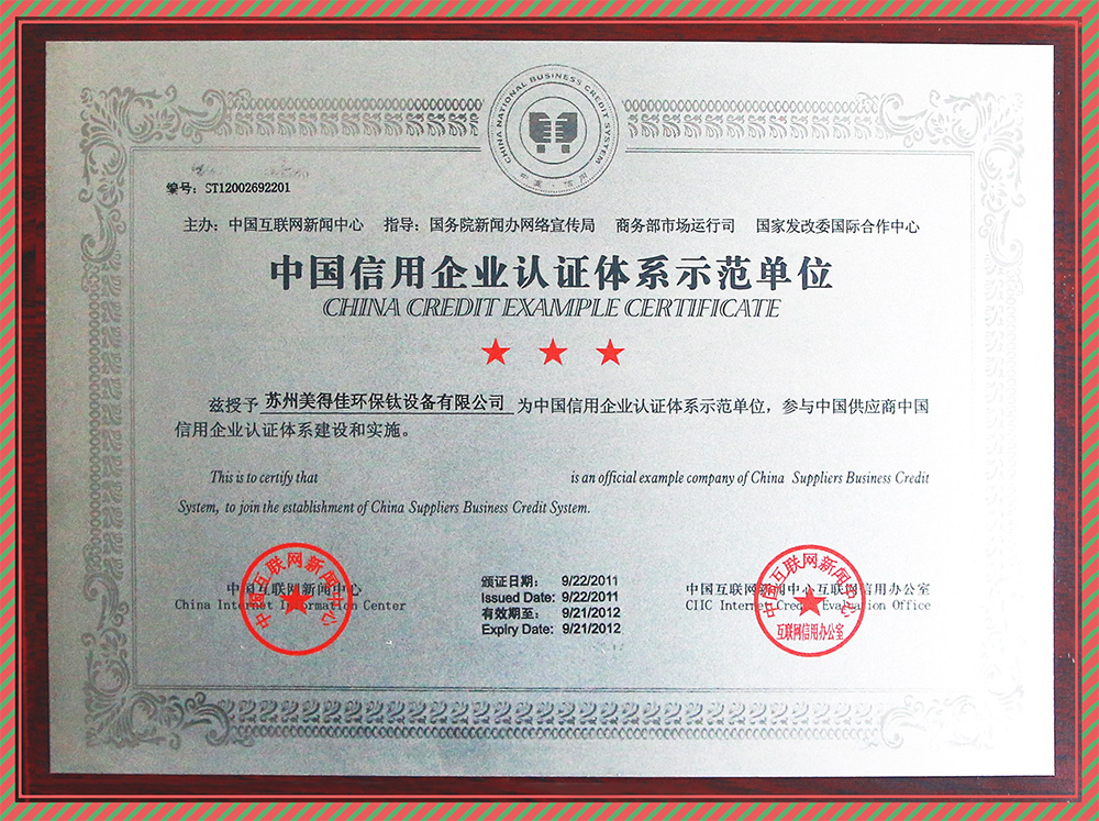 中國信用企業(yè)認(rèn)證體系證書